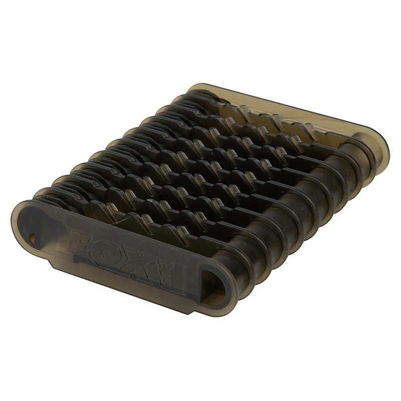 Das Vorfachregal ermöglicht die Aufbewahrung aller Arten von vorgebundenen Vorfächern, indem es entweder die Metallzapfen oder die geformten Haubenteile verwendet. In diesen Racks können bis zu 10 vorgebundene Vorfächer einschließlich der Komponenten des Bleisystems wie Lead Clips und Helikopterperlen/Hülsen aufbewahrt werden.Für bis zu 10 vorgebundene Vorfächer
