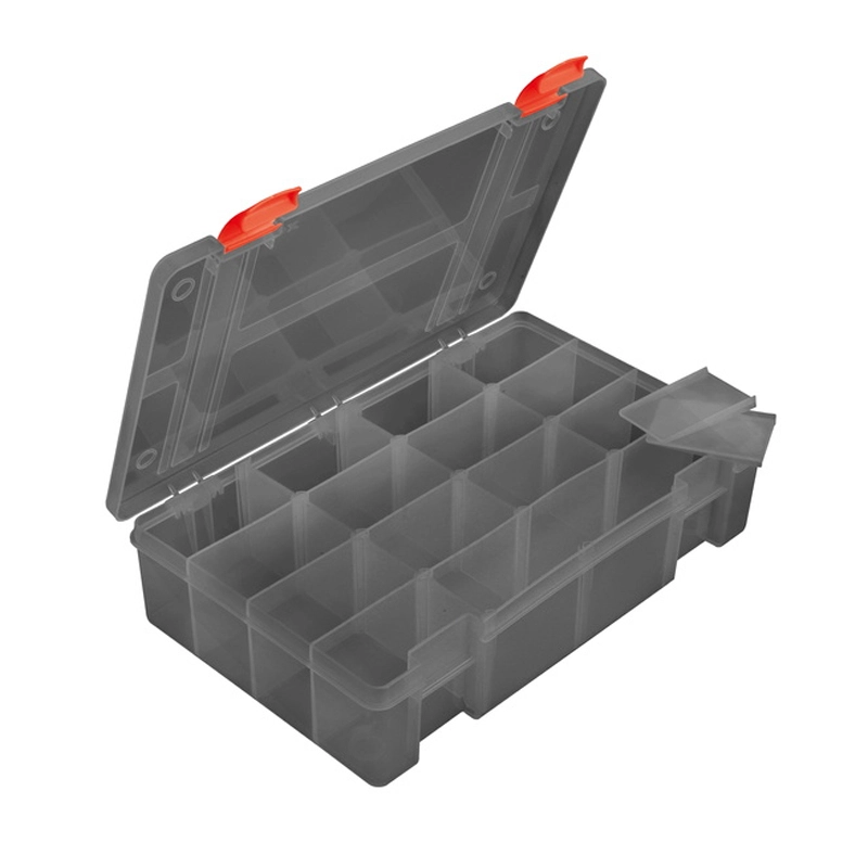 Ein überzeugendes Konzept zur Organisation und Aufbewahrung. Diese Boxen sind aus strapazierfähigem Kunststoff gefertigt und haben verstellbare Einzelfächer. Deckel und Verschlüsse sind separat abnehmbar, nicht fixiert und können daher nicht abbrechen.Zudem sind die Boxen weichmacherbeständig und daher für die Lagerung aller Arten von Gummiködern geeignet. Farbe: grau-transparent mit UV-Filter (der ein Ausbleichen der Köder verhindert). ProduktGrößeAnzahl Fächer Größe der FächerNBX001 36cm x 23cm x 8cm168,5cm x 5,5cm x 7,5cm• Starke Kunststoffkonstruktion mit Rauch-Finish• Verstellbare Innenfächer• Geeignet zur Aufbewahrung von Weichplastikködern und Zubehör• Vollständig kompatibel mit der Rage Voyager Gepäckserie