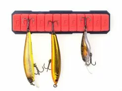Zu diesem Zweck ist das Pad mit einem starken 3M-Klebeband ausgestattet. Wer es noch sicherer möchte, nutzt die vorhandenen Bohrlöcher zum Anschrauben. Das Big Jig Launch Pad fixiert sicher bis zu 11 Jigs, Haken oder Köder.