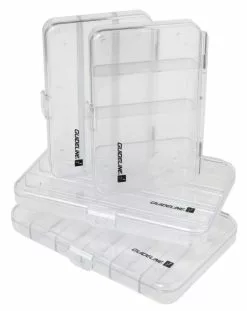 Die Boxen gibt es in zwei Größen, die in die Taschen aller unserer Jacken, Westen und Tragesysteme passen. Die Boxen sind transparent, damit der Inhalt leicht zu erkennen ist, und der Boden ist abgerundet, damit die Fliegen leicht aufgenommen werden können.Große 4er Box mit den Maßen: 186 mm lang x 130 mm breit x 27 mm dickEs gibt 4 Räume in Längsrichtung für Fliegen bis zu 18 cm Länge