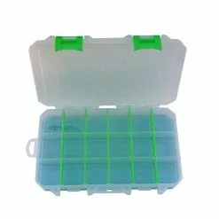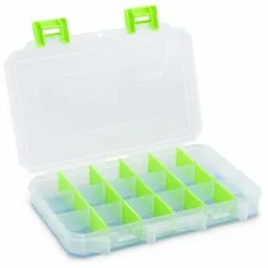 Lurefans largest fishing tackle box with TakLogic Technology and optional permanent dividers creates three compartments. It features clear plastic, sturdy yet easy-to-open green latches, and comes with Snap-Apart Dividers so you can customize your tackle box the way you want it. The TakLogic Technology is scent-free, environmentally friendly and will protect your lures, baits, weights, hooks and terminal tackle.Dimensions: 11“ x 7 1/4“ x 1 3/4“ (27.94 x 18.41 x 4.44 cm)Store your Lure Lock box horizontally to utilize the TAK Technology’s full potential. Gravity will activate the TAK’s release time.TakLogic Technology holds and cradles fishing lures, hooks, and terminal fishing tackle in a soft, safe environment, locking it into place while keeping the vibration and movement from dulling the hooks, barbs, paint, and even the overall effectiveness of the lure itself.Our TakLogic Technology is safe and formulated from a soy-based recipe we produce in-house at our Wisconsin factory. It’s made from renewable resources.