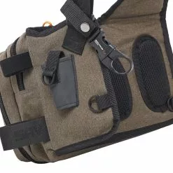Ausgestattet mit einem leicht zugänglichen, herunterklappbaren Frontfach mit fester 5B-Köderbox im Inneren, bietet das Hauptfach zusätzlich Platz für zehn strapazierfähige PE-Taschen für Vorfächer und Gummifische. • Oversized nylon zippers• Ergonomic shoulder strap• Net and bottle clip• Pliers holder• 5B box in see-through smoke colour PP material with UV protection• 10 heavy-duty PE bags in medium size