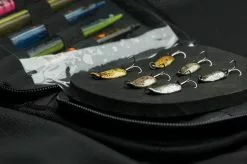 Perfekt für einen Mix aus schnurgebundenen Ködern und geriggten Ködern mit Drillingshaken oder Einzelhaken. Fasst 12 Köder plus viel Platz für Haken in der Schaumstoffwand. Überdimensionale Nylon-Kopf-Reißverschlüsse.