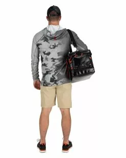 Rugged 1200-denier polyester ripstop material with TPU coating is water-resistant and durable.The top zipper accesses the main compartment with a large zippered mesh pocket under the lid.Spacious main compartment with adjustable internal divider holds up to 5 Plano 3700 boxes vertically oriented.The external organization features zippered spool and accessory pockets on either side with an additional stretch mesh stash pocketLaser-cut lash ports and webbing loops offer attachment of tools, as well as other Simms packs and accessoriesStructured seams and reinforced base ensure durable protection of contentsMain Shell: 1200D Polyester with TPU CoatingLiner: 200D Polyester