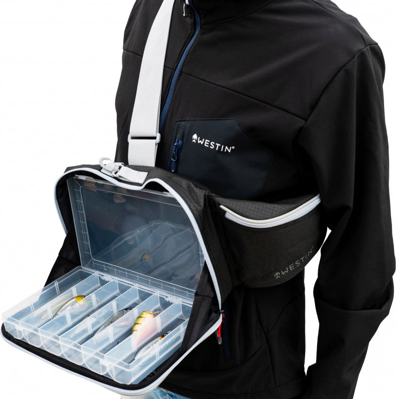 Lass die W3 Street Sling auf Deinem Rücken hängen und schiebe sie rüber, wenn es Zeit für einen Köderwechsel ist. Dank des Klappsystems bleibt die Köderbox an ihrem Platz und Du kannst Dich ganz auf die Auswahl des richtigen Köders konzentrieren. Die Tasche verfügt über einen D-Ring zur Befestigung von Zubehör, einen Klettverschluss für Werkzeug und einen Schnellverschluss. Im Inneren der W3 Street Sling findest Du eine große Netztasche.52 x 21 x 6 cmMaterial: 660D/210D Diamond Pattern Polyester mit Beschichtung1 Köderbox (27 x 18 x 4cm) enthaltenWasserfeste MaterialienKlettverschluss für Werkzeug und Schnellverschluss1 kleiner D-RingGepolsterte TascheVerstellbarer SchultergurtGepolsterter Rücken für mehr KomfortÜbergroßer Reißverschluss
